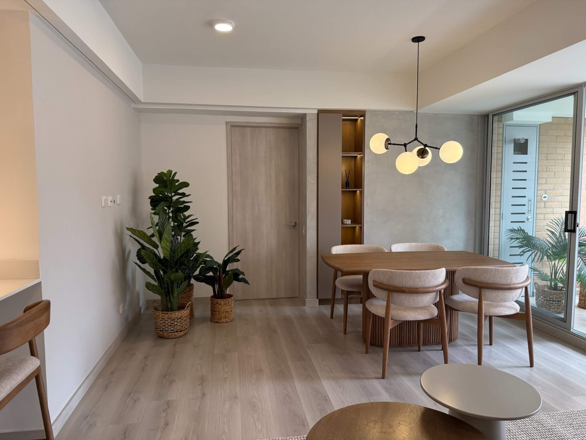 Each bedroom is generously sized, and the entire apartment is beautifully decorated with a refined, modern aesthetic that creates a warm yet sophisticated atmosphere.