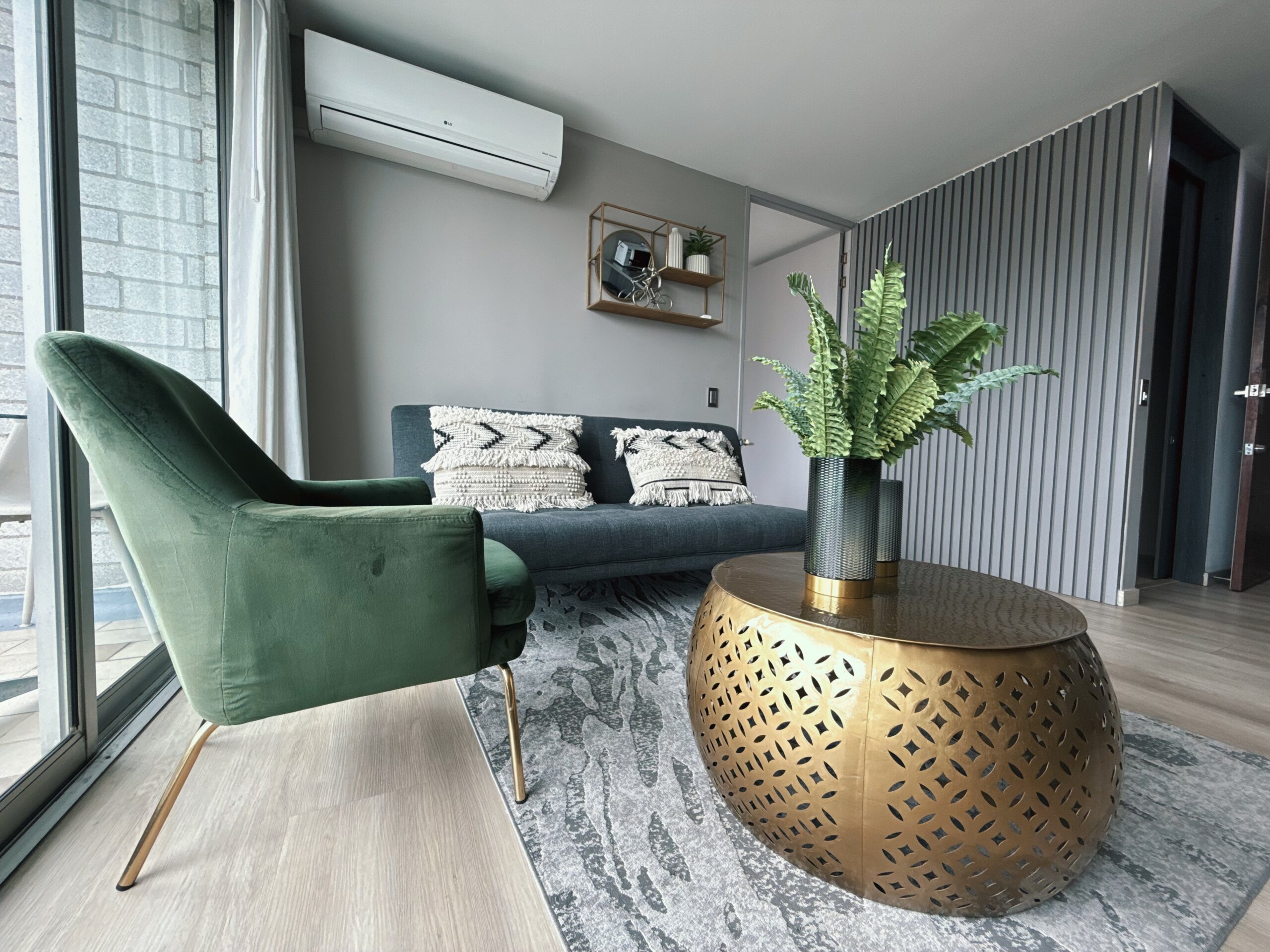 Experience comfort and convenience in this modern, fully furnished one-bedroom apartment featuring a bright, spacious design and beautiful gray-toned views. The apartment is handicap friendly, offering easy access and thoughtful details throughout.