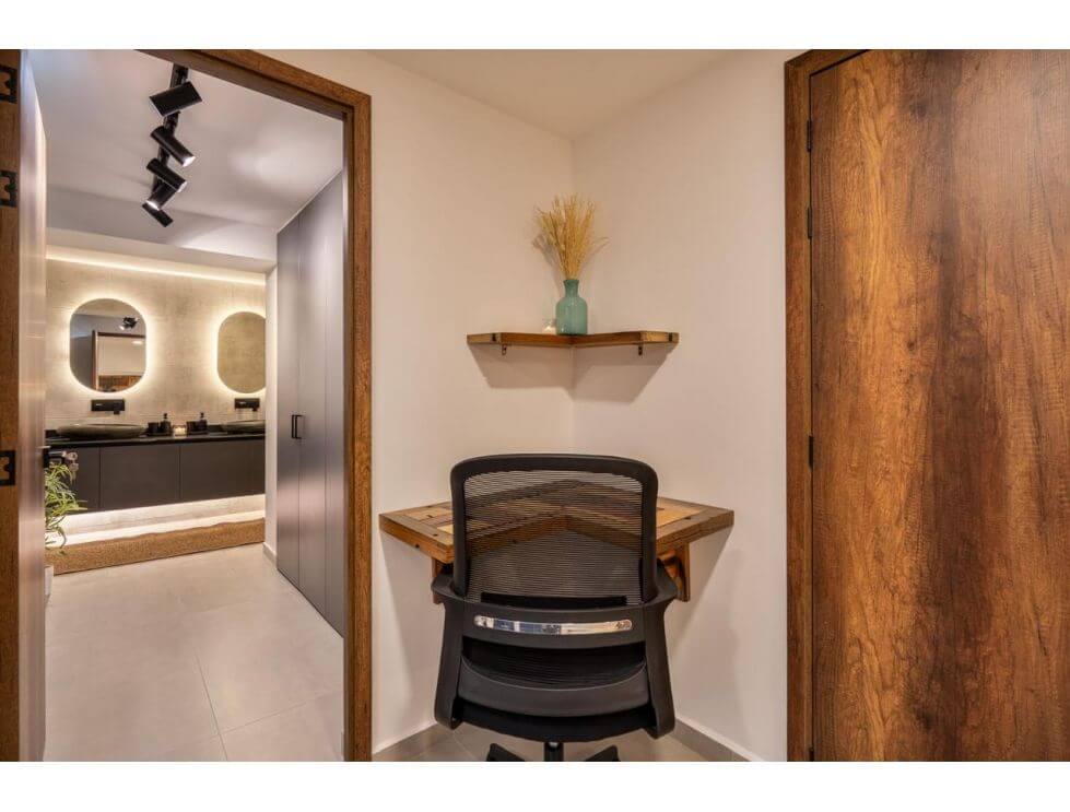 The open-plan living area strikes the perfect balance between form and function—ideal for entertaining, relaxing, or working from home in a space that inspires creativity and comfort.
